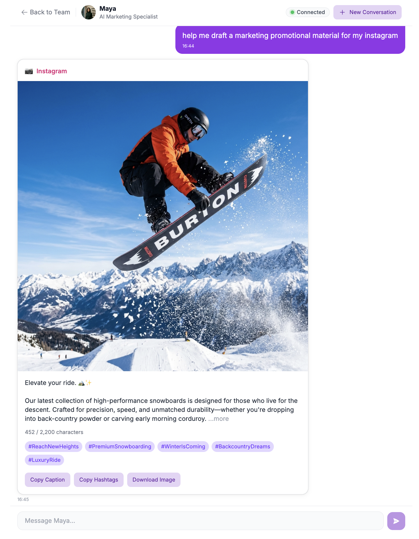 Take a closer look of how Maya AI agent helps businesses in their contents.
